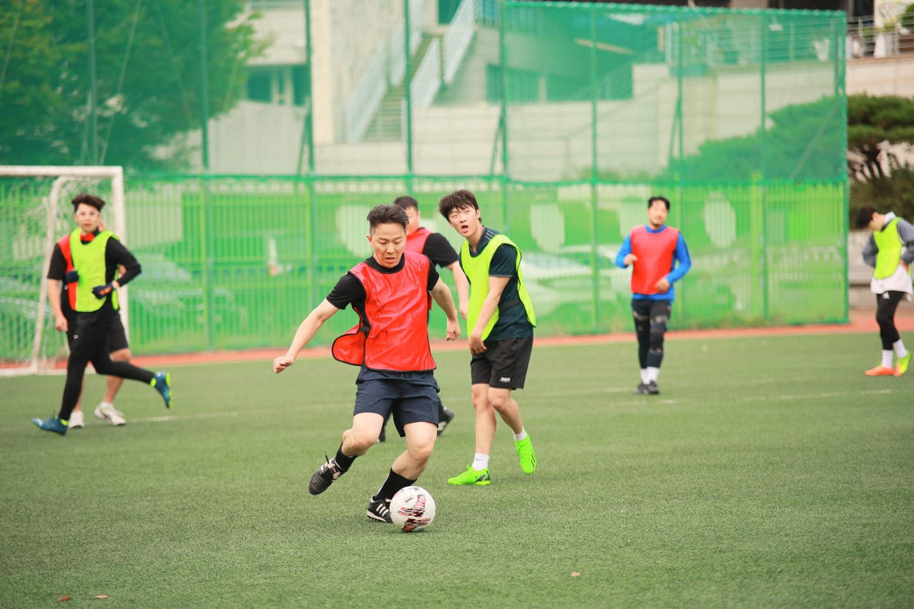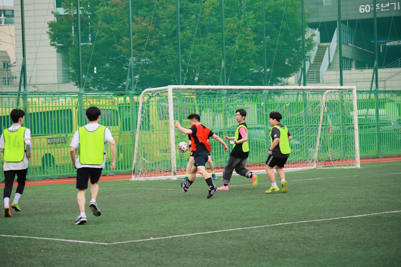 청년들과 청장년들이 함께 즐거운 축구 교제를 가졌습니다.